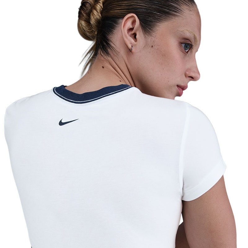 Serve up style and performance with the Nike Court Club Crop Women’s Tennis Top—a modern take on classic court apparel. Designed specifically for female athletes, this cropped silhouette brings bold energy to your game with its clean lines and flattering fit. Made from Nike’s signature Dri-FIT technology, the fabric actively wicks away sweat to keep you cool and dry through intense rallies and hot match days. The ribbed collar and soft, stretchy material offer comfort and mobility, while the cropped length pairs perfectly with high-waisted tennis skirts or shorts. Whether you’re smashing forehands or cheering courtside, this top delivers serious court cred.Why You’ll Love It:Dri-FIT technology keeps you dry and focusedCropped, tailored fit for modern style and freedom of movementSoft, stretch-knit fabric offers lasting comfortMinimalist design with Nike branding for a clean, professional lookIdeal for practice, competition, or casual wear, the Nike Court Club Crop is a must-have for every tennis player who plays hard and dresses sharp.